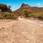 “This is a blind lady Chepkerial being led home by a helper. If you enlarge slightly that photo you’ll see the houses on the hillside.”