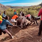 “Our bull camel needed treatment for a badly cut foot. He doesn’t like it but it is very necessary. £ a week were the original great supporters of our camel project.”